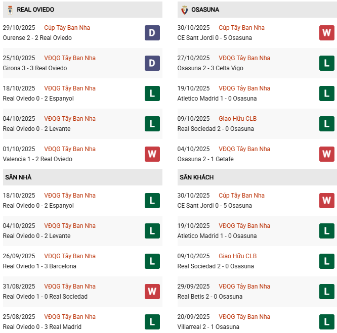 - Oviedo thắng 2, hòa 1, thua 3 trong 6 trận gặp Osasuna gần đây.