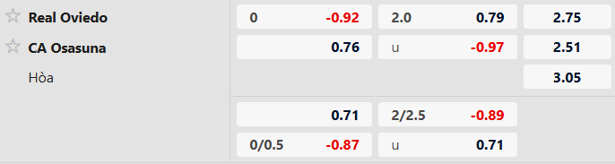 Oviedo đang chơi khá tệ trên sân nhà khi đã thua 4 trong 5 trận gần nhất. Trong khi đó, Osasuna khá hơn khi vừa chiến thắng ở trận làm khách gần nhất. Chính vì vậy, Oviedo đang bị đánh giá thấp hơn nhiều trong trận đấu này. Với phong độ yếu kém ở thời điểm này, Oviedo được dự đoán sẽ tiếp tục phải nhận thêm một thất bại.