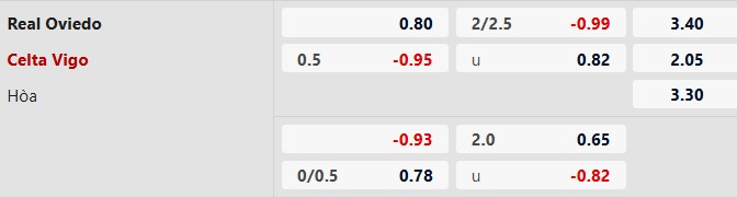 Thông tin tỷ lệ cược Oviedo vs Celta Vigo: