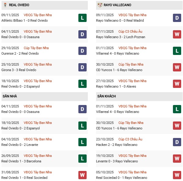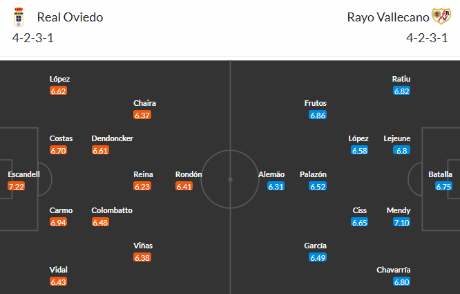 Về phần Rayo Vallecano, đội khách vừa có trận hòa 0-0 trước Real Madrid. Trong trận đấu đó, họ kiểm soát bóng 46% và tạo ra tới 13 cú sút, dù chỉ 2 lần trúng đích. Phong cách thi đấu của Rayo Vallecano thường dẫn tới những trận đấu nhiều bàn thắng; 6 trận gần nhất của họ chứng kiến tổng cộng 21 bàn, trung bình 3,5 bàn/trận. Tuy nhiên, trong các lần đối đầu với Oviedo trên sân khách gần đây, họ chưa thắng, nên sẽ phải nỗ lực để phá dớp.