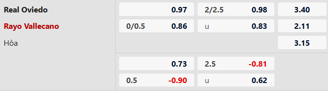 Thông tin tỷ lệ cược Oviedo vs Vallecano: