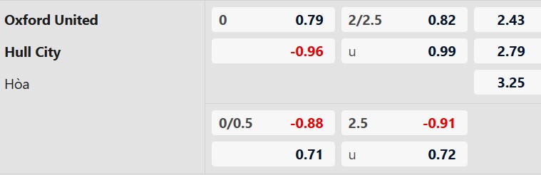 Thông tin tỷ lệ bóng đá Oxford vs Hull City: