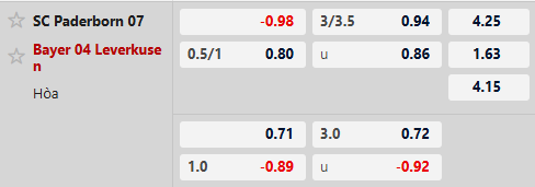 Soi kèo tài xỉu Paderborn vs Leverkusen: