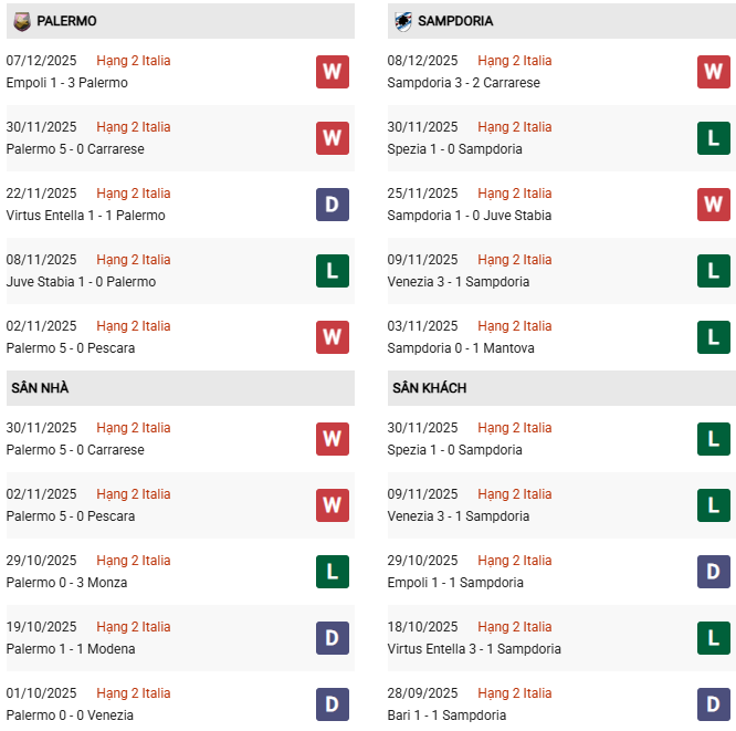 Sự chênh lệch giữa hai đội thể hiện rõ ràng ở cả phong độ lẫn chất lượng đội hình. Palermo đang có chiều sâu tốt hơn và duy trì được sự đồng đều trong lối chơi, trong khi Sampdoria vẫn chật vật tìm đường thoát khỏi nhóm cuối bảng.