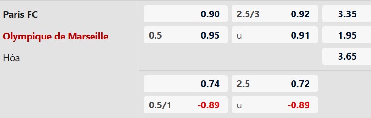 Lẻ bàn thắng: 5/6 trận gần nhất của Paris FC và 4/5 trận vừa qua của Marseille đều có tổng bàn thắng là lẻ. Ngoài ra, 7/11 trận sân nhà gần đây của Paris FC và 12/14 chuyến làm khách vừa qua của OM cũng khép lại với tổng bàn thắng không chia hết cho 2. Trận này khó có ngoại lệ.