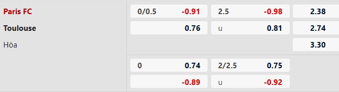 Thông tin tỷ lệ Paris FC vs Toulouse: