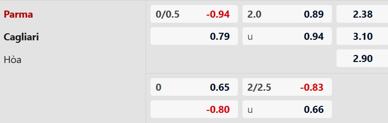 Thông tin tỷ lệ kèo Parma vs Cagliari: