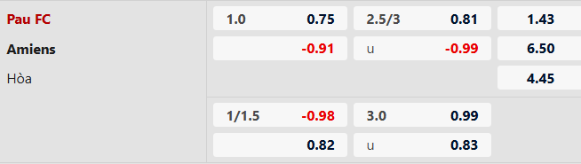 Với mức chấp 1 hòa, Pau FC được đánh giá ở cửa trên khá mạnh, phản ánh đúng thực lực và ưu thế sân nhà. Pau FC vốn chơi tốt khi được thi đấu tại sân của mình, với tỷ lệ thắng chiếm 60% trong 10 trận gần nhất. Trong khi đó, Amiens dù có thành tích sân khách không quá tệ nhưng lối chơi thiếu cân bằng và phong độ thất thường khiến họ khó tạo ra sự đột biến trước đối thủ vượt trội hơn.