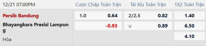 Thông tin tỷ lệ cược Persib Bandung vs Bhayangkara: