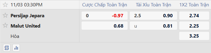 Thông tin tỷ lệ cược Persijap gặp Malut United: