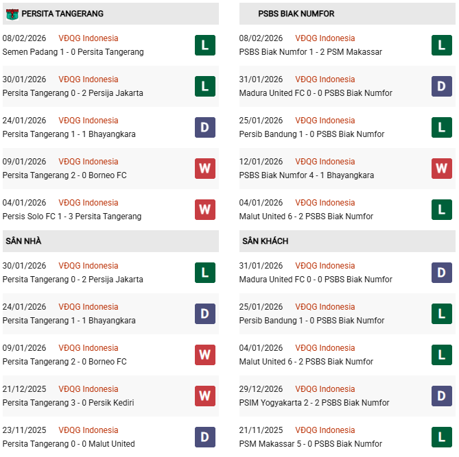 - PSBS Biak Numfor thắng 2/3 trận đối đầu vừa qua trước Persita Tangerang