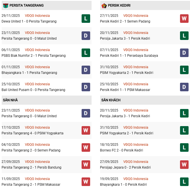 - Trên sân nhà, Persita thắng 2, thua 2 trước Persik Kediri.