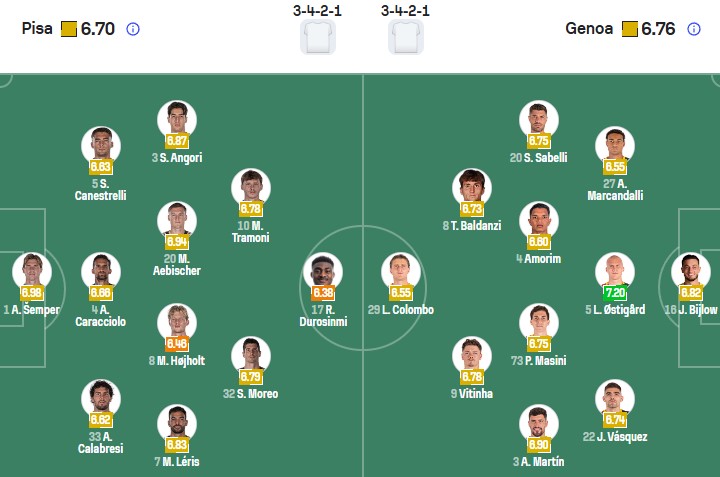 Vòng tới, Pisa được thi đấu dưới mái vòm Cetilar® Arena và sân nhà là cứu cánh duy nhất cho họ vào lúc này bởi ít ra cả 2 thắng lợi ít ỏi có được từ đầu Serie A 2025/26 đều xuất hiện tại đây. Bên kia chiến tuyến, Genoa có lúc cũng lo sốt vó về nguy cơ rớt hạng như Pisa nhưng họ đã có sự cải thiện quãng thời gian gần đây với 4 chiến thắng sau 8 vòng, tức gần tương đương với thành tích của 24 vòng trước đó (5 thắng lợi).