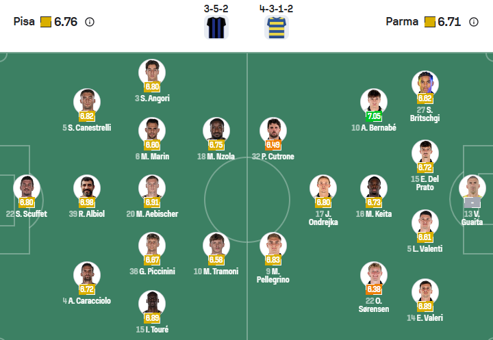 Đội hình dự kiến Pisa vs Parma: