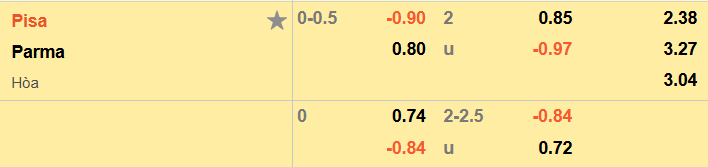 Nhận định kèo châu Á Pisa vs Parma: