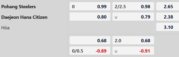 Thông tin tỷ lệ kèo Pohang Steelers vs Daejeon: