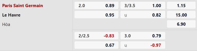 Lẻ bàn thắng: 5/8 cuộc đối đầu gần nhất tại Ligue 1 và 5/6 trận gần đây của PSG đều khép lại với tổng bàn thắng là lẻ. Ngoài ra, 3/4 lần gần nhất PSG đón tiếp Le Havre tại Parc des Princes cũng đều khép lại với tổng bàn thắng không chia hết cho 2. Trận này khó có ngoại lệ.