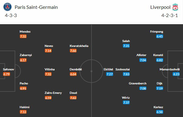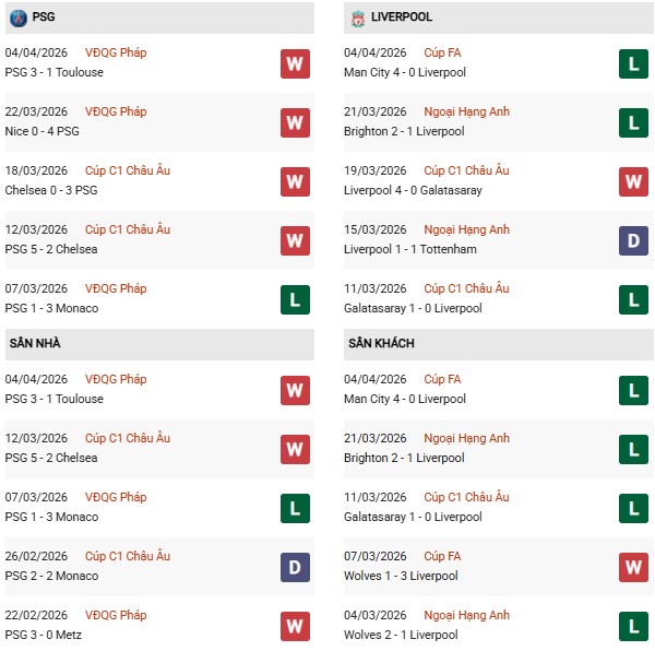 Thống kê phong độ PSG vs Liverpool: