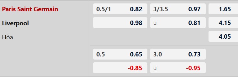 Thông tin tỷ lệ kèo bóng đá PSG vs Liverpool: