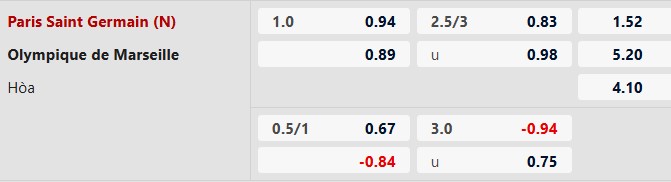 Từ 3 bàn trở lên: 6/9 cuộc đụng độ gần nhất, 8/11 trận gần đây của PSG và 6/9 trận vừa qua của OM đều có ít nhất 3 lần lưới rung cả trận. Ngoài ra, 8/9 chuyến xa nhà gần đây của Marseille cũng chứng kiến tối thiểu 3 bàn thắng cả trận. Vì thế, rất có thể trận này không phải là ngoại lệ.