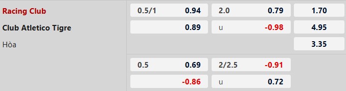 Soi kèo châu Á Racing Club vs Tigre: