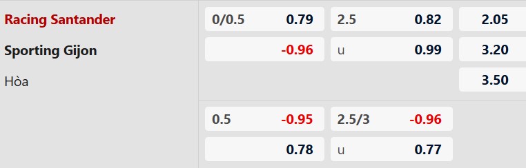 Thông tin tỷ lệ kèo Racing Santander vs Gijon: