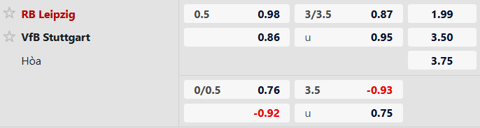 Thông tin tỷ lệ cược RB Leipzig gặp Stuttgart: