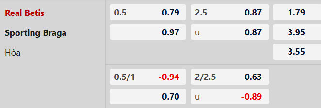 Nhận định kèo tài xỉu Real Betis vs Braga: