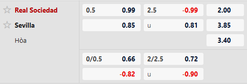 Lợi thế sân nhà vẫn đang giúp Real Sociedad được đánh giá cao hơn đôi chút với mức chấp 1/2 bàn. Dù vậy, nên nhớ rằng, 2 mùa vừa qua, sau 3 lần gặp nhau, Sevilla đã thắng đến 2 trận và không thua trên sân của Real Sociedad kể từ năm 2023. Với bối cảnh hiện tại, không quá ngạc nhiên nếu đội khách có thể thành công ra về với 3 điểm trọn vẹn đồng thời thắng luôn kèo châu Á.