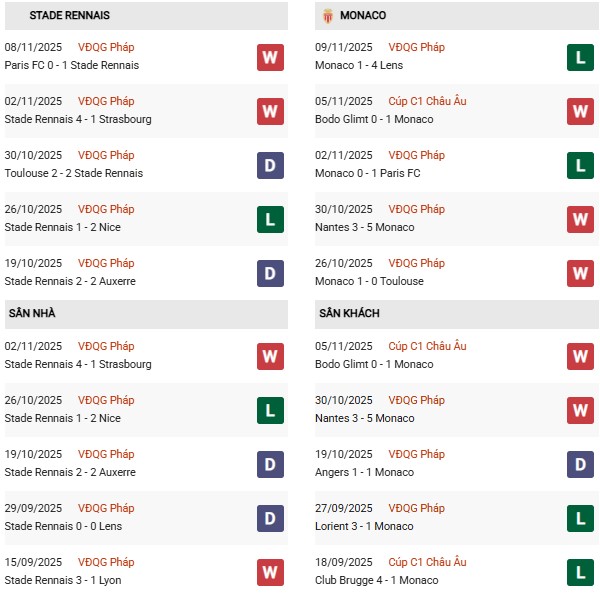 - Trên sân nhà, Rennes thắng 3, thua 4 trước Monaco.