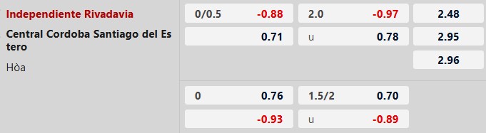 Thông tin tỷ lệ Rivadavia gặp Central Cordoba: