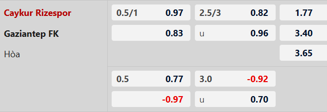 Thông tin tỷ lệ bóng đá Rizespor vs Gaziantep: