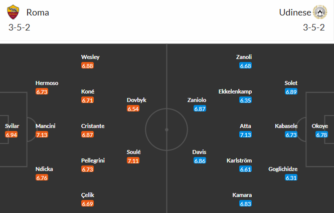 Phong độ của Roma vs Udinese không quá chênh lệch. Nhưng Roma có lợi thế sân nhà và thành tích đối đầu trực tiếp tốt hơn. Nhiều khả năng, 3 điểm sẽ ở lại với thầy trò HLV Gasperini.