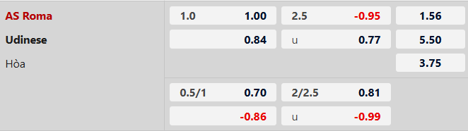 Soi kèo tài xỉu Roma đấu với Udinese: