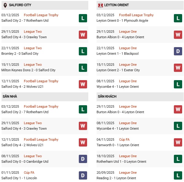 Salford có phong độ sân nhà rất đáng tin, trong khi Leyton Orient lại thường thi đấu thất thường trên sân khách.
