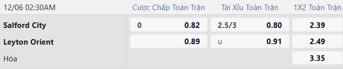 Kèo châu Á hòa được thua cho thấy giới chuyên gia không nghiêng về bên nào, dù Leyton Orient là đội chơi ở hạng đấu cao hơn. Điều này xuất phát từ việc Salford có phong độ sân nhà rất đáng tin, trong khi Leyton Orient lại thi đấu thất thường trên sân khách. Ngoài ra, lịch sử đối đầu cân bằng cũng khiến trận đấu trở nên khó dự đoán hơn. Với sự tự tin mỗi khi thi đấu tại “tổ ấm”, Salford hoàn toàn có cơ hội tạo ra bất ngờ trước đối thủ nhỉnh hơn về danh tiếng.