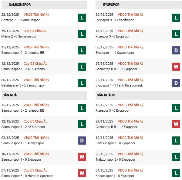 - Samsunspor thắng 5, hòa 3, thua 2 trong 10 trận gặp Eyupspor gần đây.