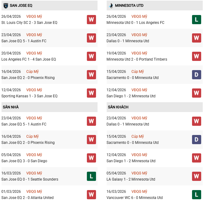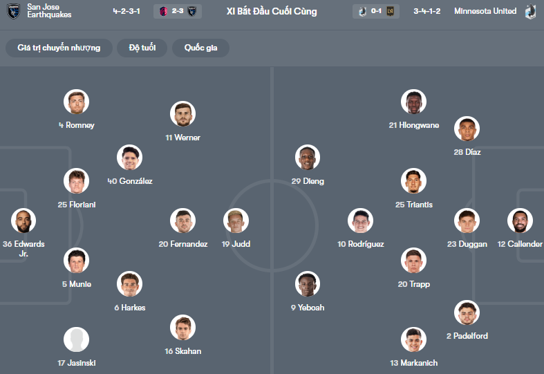 Phía bên kia chiến tuyến, Minnesota United lại đại diện cho sự lỳ lợm và kỷ luật. Với vị thế là đội bóng đứng thứ 15 tại Mỹ, “Những chú chim lặn” sở hữu lối đá thực dụng và khả năng kiểm soát nhịp độ trận đấu rất tốt. Họ có xu hướng chơi thận trọng trong những chuyến làm khách, chờ đợi sai lầm từ phía đối thủ để tung ra những đòn phản công sắc lẹm. Tuy nhiên, việc phải thi đấu trên sân của San Jose chưa bao giờ là thử thách dễ dàng đối với Minnesota.