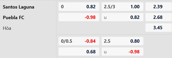 Soi kèo châu Á Santos Laguna vs Puebla: