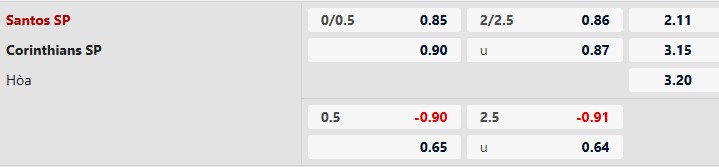 Thông tin tỷ lệ bóng đá Santos vs Corinthians:
