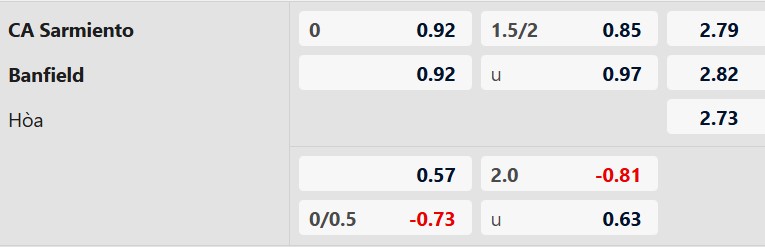 Thông tin tỷ lệ bóng đá Sarmiento vs Banfield: