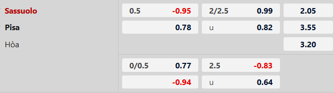 Thông tin kèo bóng đá Sassuolo vs Pisa: