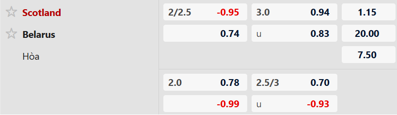 Thông tin tỷ lệ kèo Scotland vs Belarus: