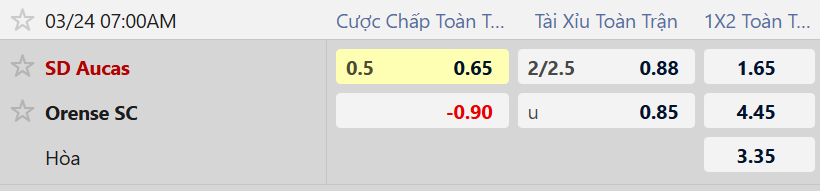 Thông tin tỷ lệ kèo SD Aucas vs Orense SC: