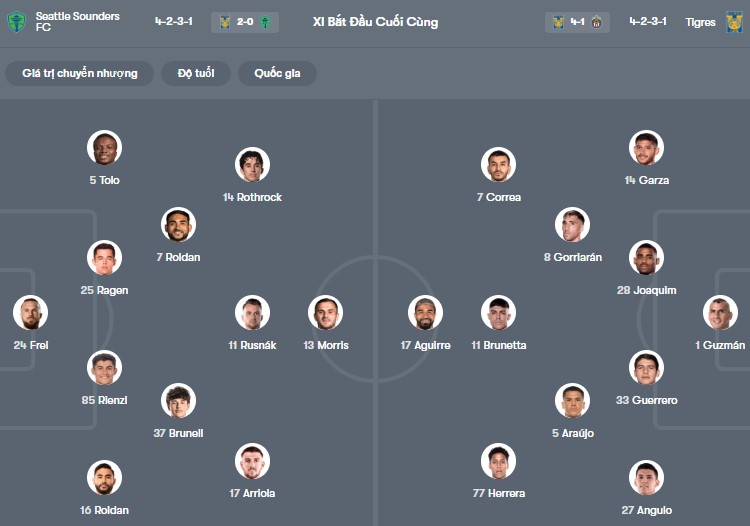 Thông tin lực lượng Seattle vs Tigres UANL: