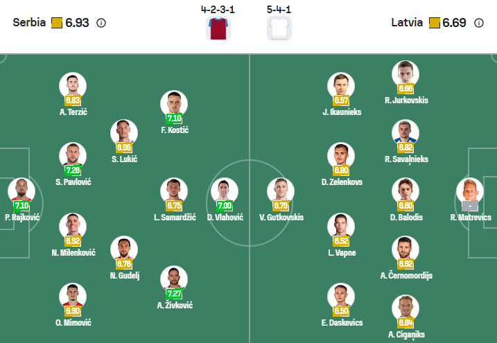 - Serbia thắng 1-0 trước Latvia ở trận đấu lượt đi.