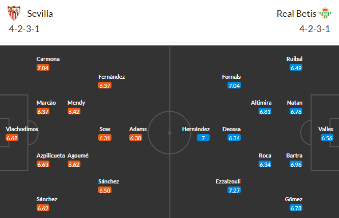 So với Betis, Sevilla hiện đứng thứ 11 khi có 16 điểm. Phong độ của Sevilla vs Betis đang rất chênh lệch. Trong khi Sevilla chỉ thắng 2/5 trận vừa xong thì Sevilla toàn thắng ở 5 trận gần nhất. Sevilla có lợi thế sân nhà nhưng lại không có thành tích rất tệ khi chỉ thắng 3/10 trận đã qua. Chiều ngược lại, Betis đang chơi cực kỳ ấn tượng trên sân khách khi bất bại 9 trận vừa xong.