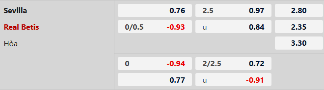 Thông tin tỷ lệ bóng đá Sevilla vs Betis: