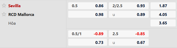 Thông tin tỷ lệ kèo Sevilla vs Mallorca: