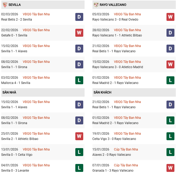 Sevilla đang là đội có thành tích sân nhà tệ thứ 4 ở La Liga. Nhược điểm này của đối thủ sẽ là điểm tựa cho Vallecano có thể hy vọng thu về ít nhất 1 điểm.